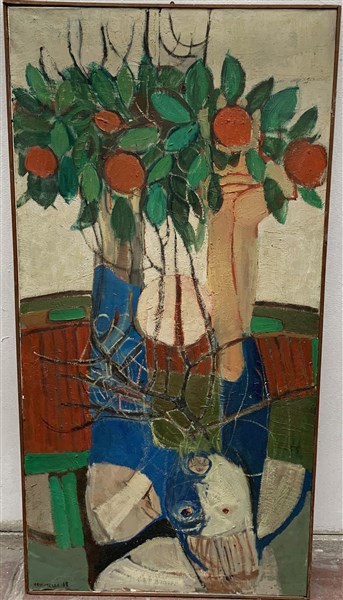 Fernando Moscatelli "A piene mani" 1968 olio su tela cm 100x50 firmato e datato