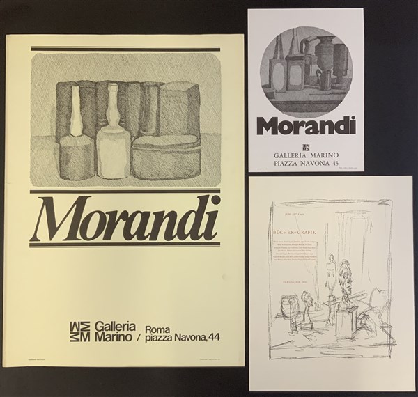 Lotto composto da quattro manifesti espositivi sulla grafica tra cui due su Giorgio Morandi della Galleria Marino, Roma (cm 100x72 e cm 50x35)
