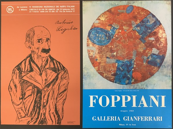 Lotto composto da undici manifesti espositivi tra i quali: "Cento opere di Erté", Club dei Bibliofili, Milano, 1971; "Bodini", Kustverein, Amburgo, 1969; "IV Rassegna Internazionale dei Naifs italiani" Circolo di via De Amicis, Milano, 1971 in tiratura limitata