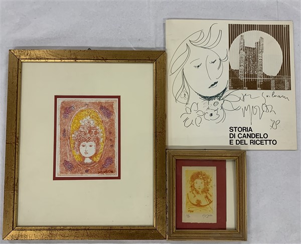Lotto composto da due acqueforti a colori raffiguranti volti