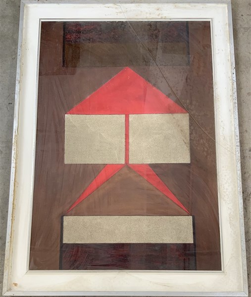 Firma indecifrata "Composizione verticale" 1976 tecnica mista su cartone telato
