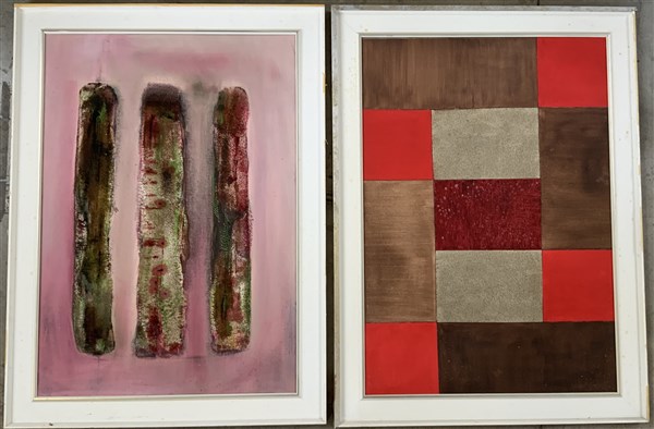 Lotto composto da due dipinti a tecnica mista su cartone telato