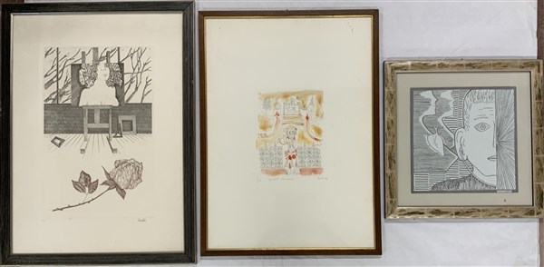 Lotto composto da due acqueforti di autori e misure diverse e una tecnica mista