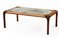 Tavolino in legno massello con angolari intagliati a motivi vegetali e piano ce
