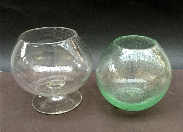 Lotto composto da una coppa in vetro soffiato trasparente incolore con inclusione di bolle, unito a un vaso bulbiforme in vetro soffiato trasparente verdino con inclusione di bolle, firmato all'acido sotto la base. Italia, anni '90. (h max cm 24) (lievi difetti)