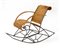 Poltrona a dondolo con seduta e schienale in midollino, struttura in ferro batt