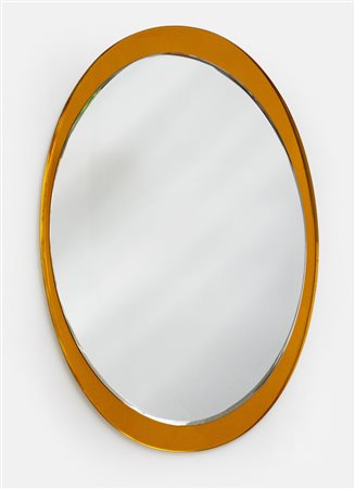 Specchiera ovale con cornice specchiata arancione. Siena, 1973. Recante etichetta adesiva al retro. (cm 89x59) (lievi difetti)