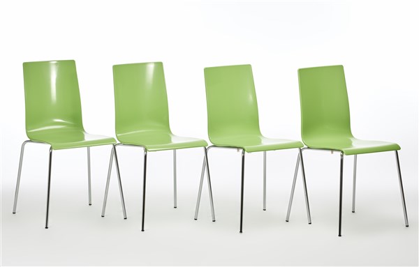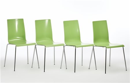Lotto composto da quattro sedie modello "Lilly". Italia, produzione recente. Acciaio e polipropilene verde. (cm 50x86x50)
