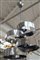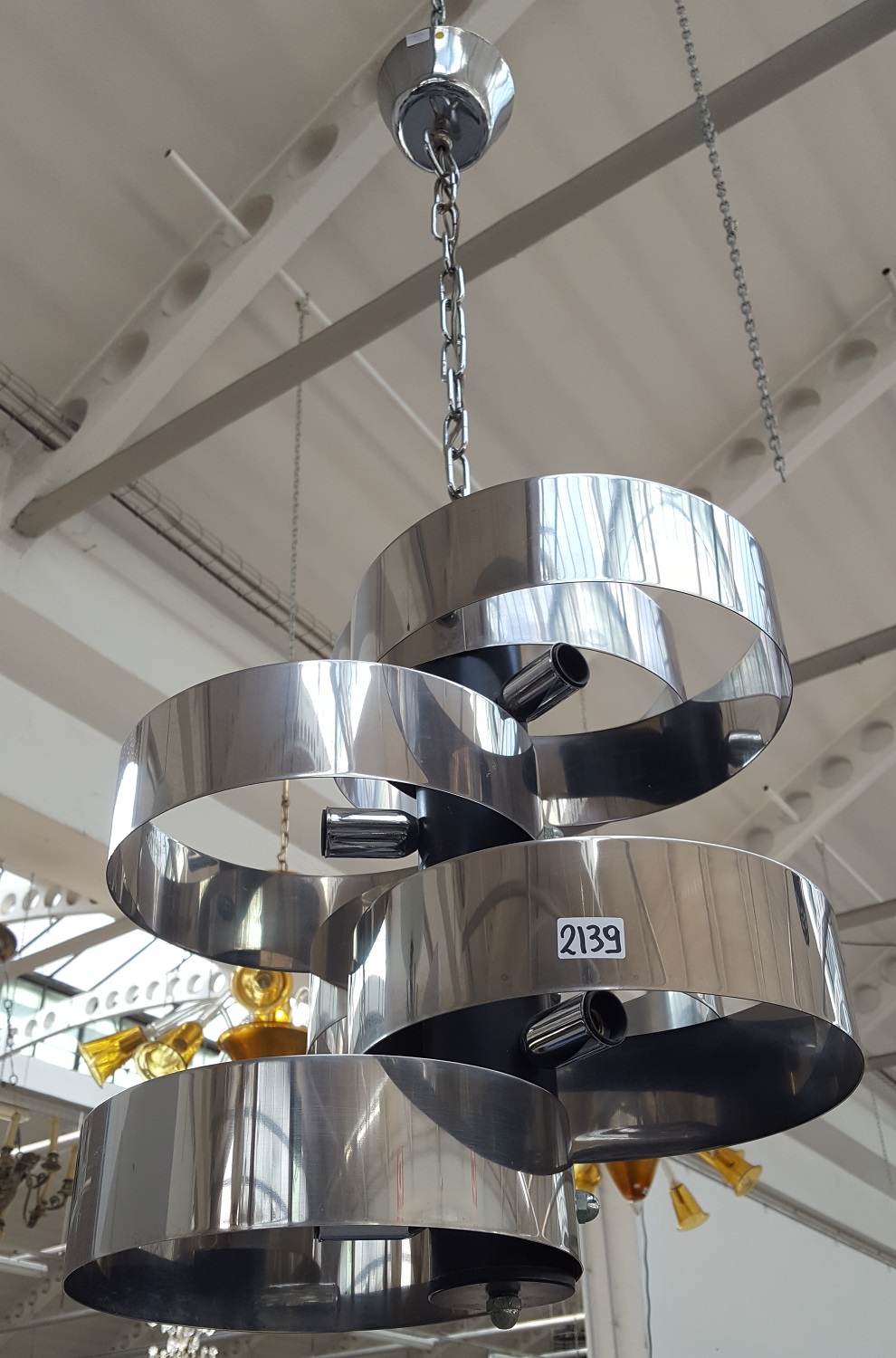 Lampada a sospensione a sei luci con struttura in acciaio Aisi e ferro verniciato nero. Italia, anni '70. (h cm 110) (lievi difetti)
