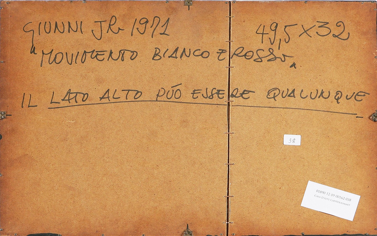 GIUNNI PIERO JR Movimento bianco e rosso, 1971. Tecnica mista su tavola. Cm...