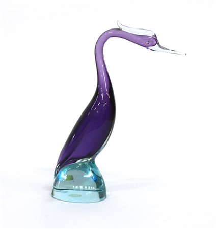 Seguso "Airone" Scultura in vetro sommerso trasparente incolore, ametista e azzu