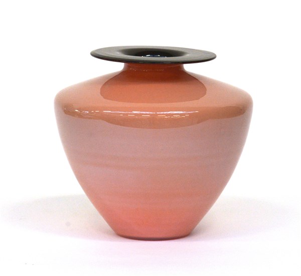 Vaso a collo stretto e bocca svasata in vetro incamiciato rosa e ametista scuro