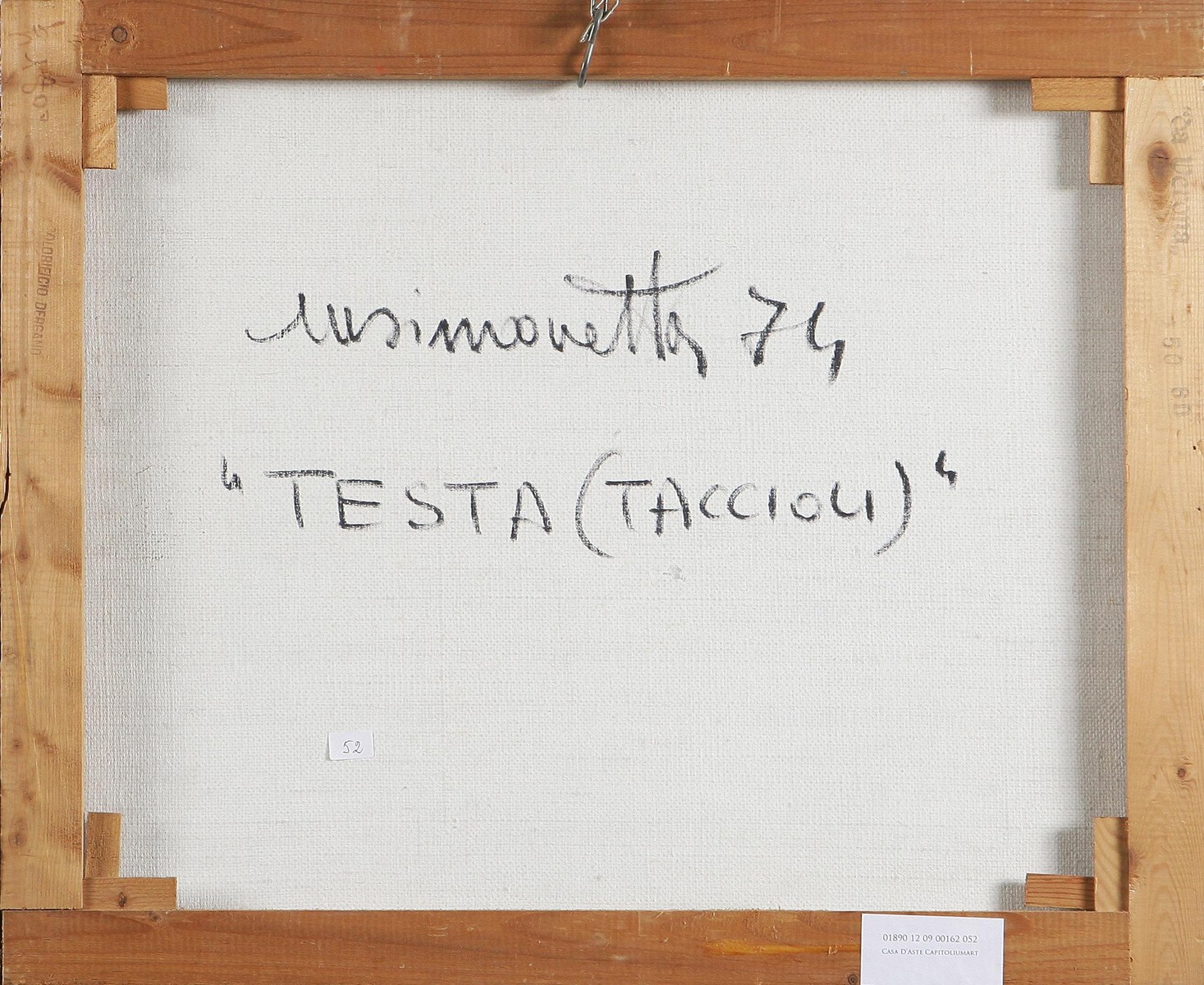 SIMONETTA MARCELLO (n. 1930) Testa (taccioli), 1974. Olio su tela. Cm 50x60....