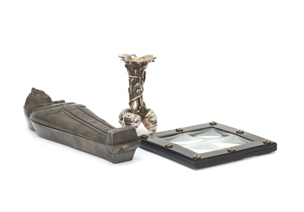 Lotto composto da un vasetto Christofle, un presse papier e una scatola a forma di sarcofago (lievi difetti)