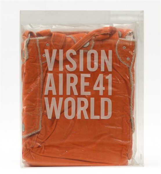 Visionaire 41 per GAP, borsa in velluto a coste arancione contenente un libro, in bacheca in plexiglass (difetti alla bacheca)