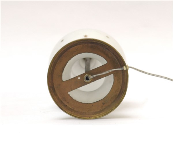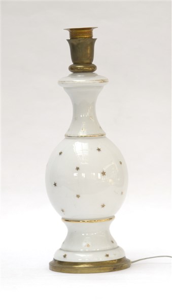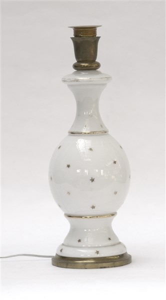 Lampada da tavolo in vetro lattimo decorata a stelline e montata in ottone (h.