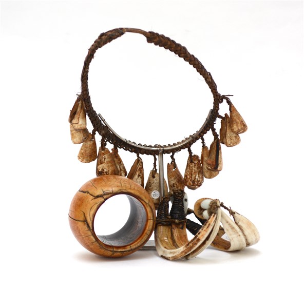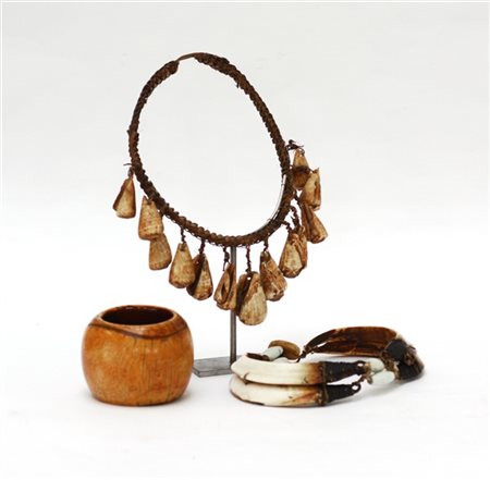 Lotto composto da due collane etniche in osso ed un bracciale