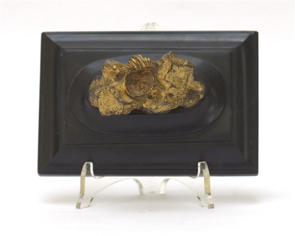 Palla in cristallo su base in bronzo dorato e marmo nero (lungh. cm 16) (restauro al marmo)