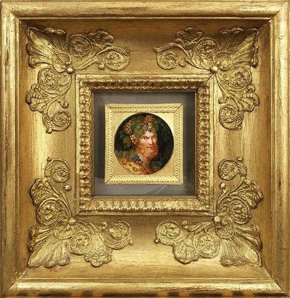Scuola del secolo XIX "Bacco" miniatura tonda in avorio montata in teca (d. cm