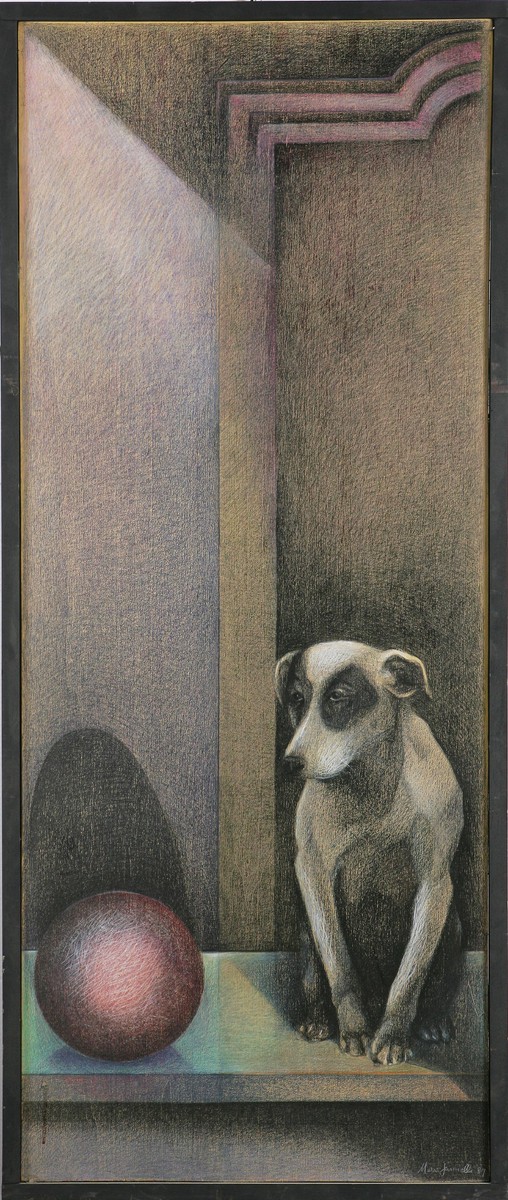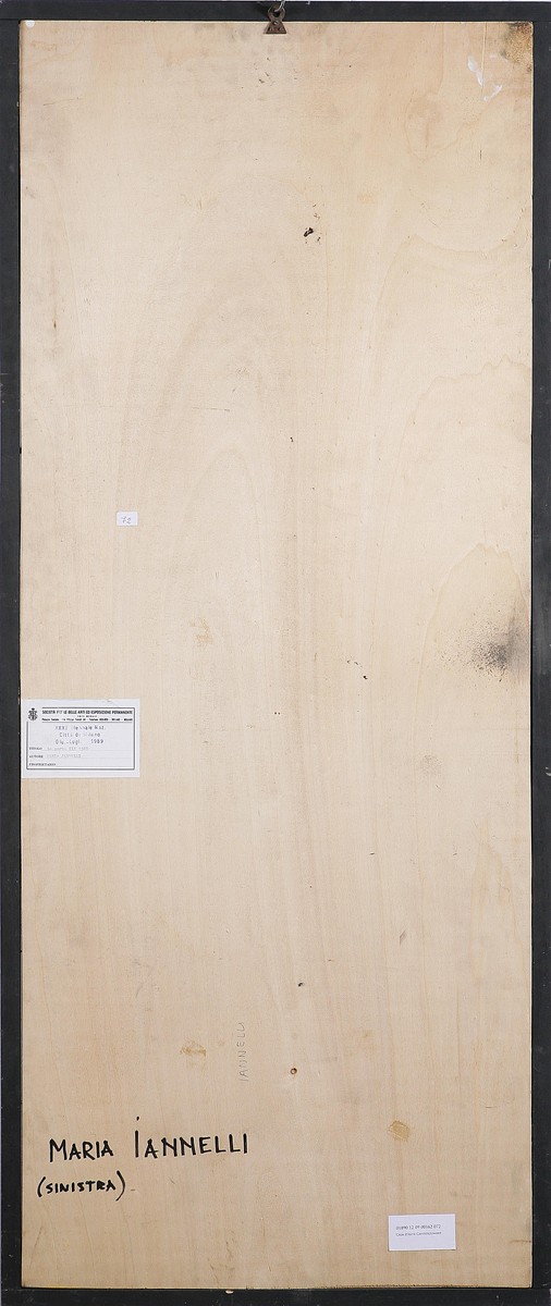 JANNELLI MARIA (n. 1951) La porta III, 1988. Olio su tavola. Cm 132x54. Firma e data in basso a destra. Al retro firma e cartiglio descrittivo della Società per le Belle Arti ed Esposizione Permanente, Milano, XXXI Biennale Nazionale, 1989.
