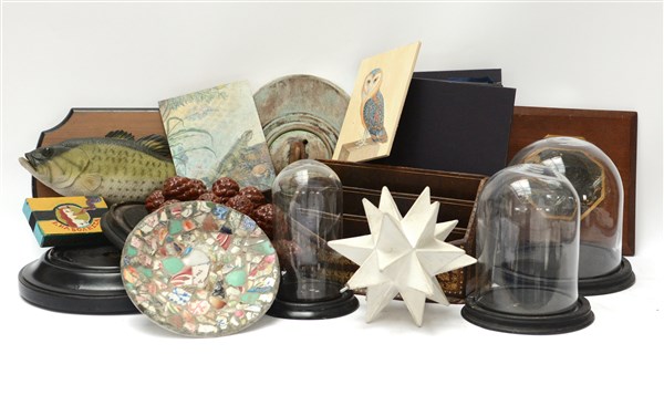 Lotto 2322 | Lotto composto da due cartoni contenenti teche e oggetti diversi (difetti)