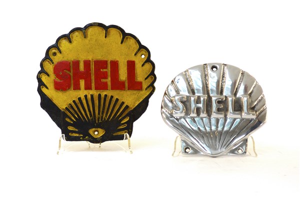 Lotto composto da due placche della Shell in metallo dipinto e alluminio presso e fuso (difetti)