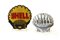 Lotto composto da due placche della Shell in metallo dipinto e alluminio presso