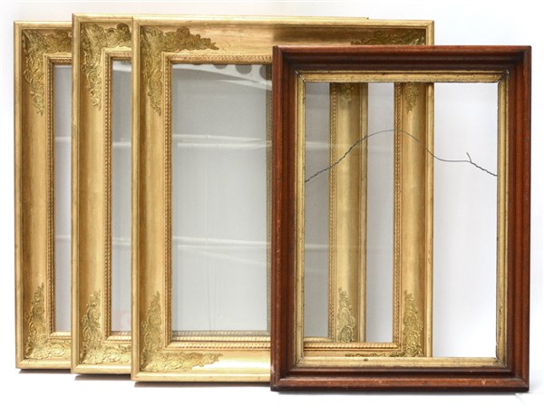 Lotto composto da quattro cornici di diverso decoro e misura (difetti)