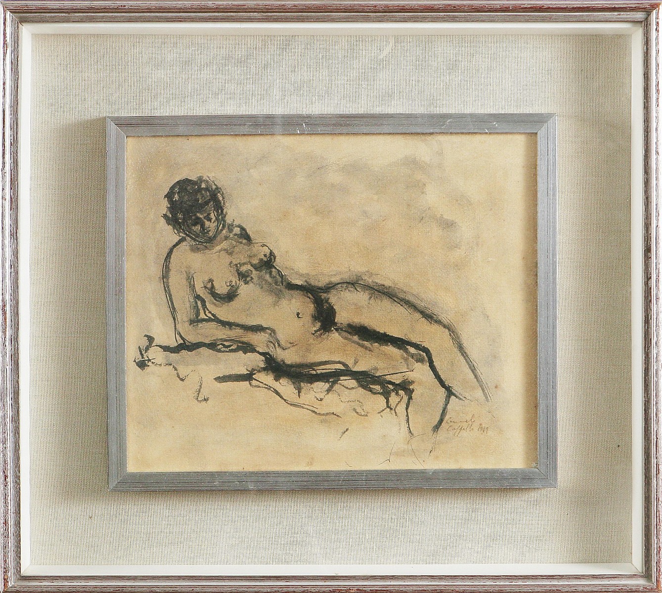 CAPPELLO CARMELO (1912 - 1996) Donna, 1941. Tecnica mista su tela. Cm 30x25. Firma e data in basso a destra. Al retro firma, data e misure.