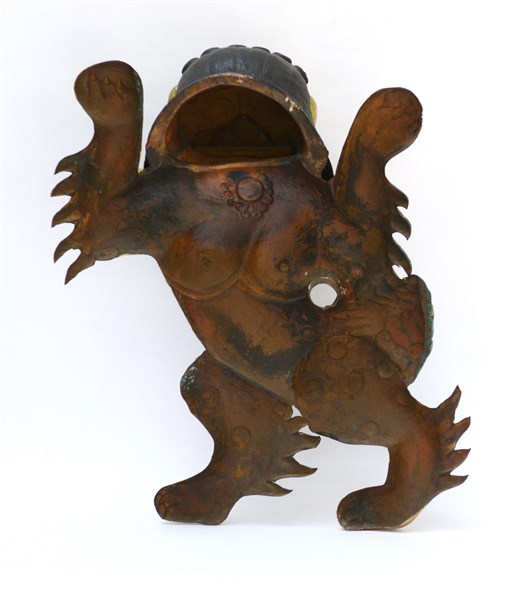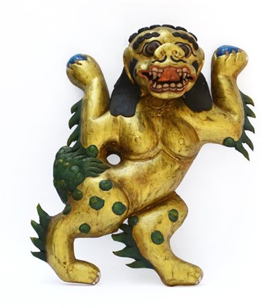 Divinità leonina in lamina di metallo policroma Sud-est asiatico, sec. XX (h. c