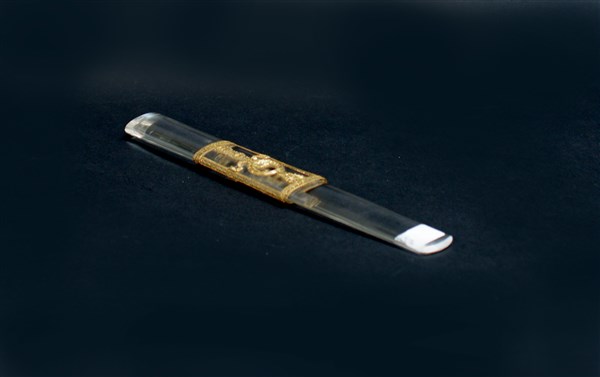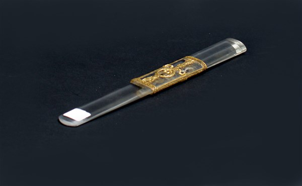 Apribuste in cristallo e ottone dorato. Francia, fine secolo XIX (lungh. cm 25,9)