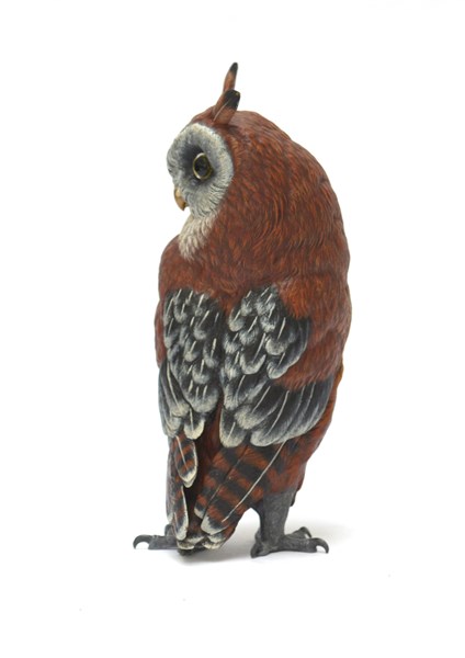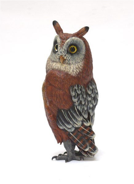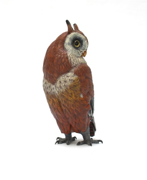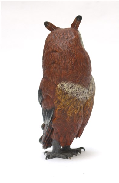 Gufo in bronzo smaltato marcato Bergman. Austria, secolo XX (h. cm 25,5)