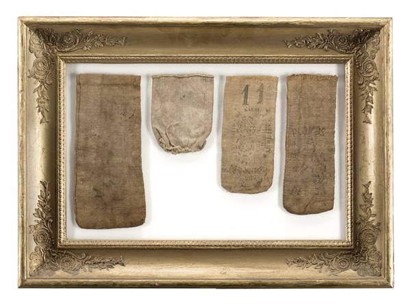 Maurizio Epifani "Sacchetti in juta" composizione in cornice dorata (cm 47x67) (lievi difetti)