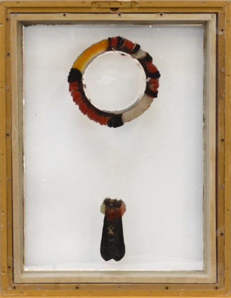 Maurizio Epifani "Copricapo indiano" composizione in teca con cornice dorata (cm 80x61)