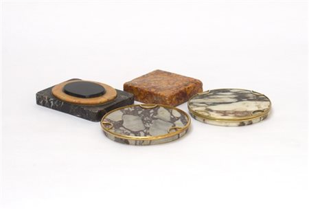 Lotto composto da quattro placchette in marmi differenti, due circolari in meta