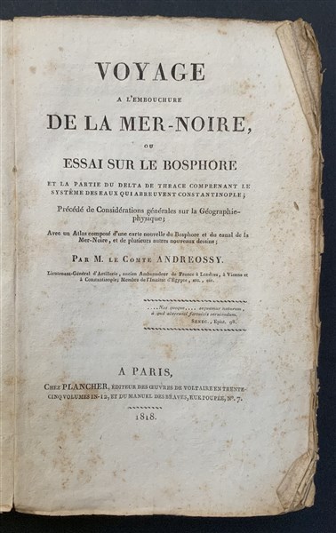 ANDREOSSY, Antoine François (1761-1828) - Voyage a l'embouchure de la Mer-Noire ou essai sur le Bosphore. Paris: Plancher, 1818.