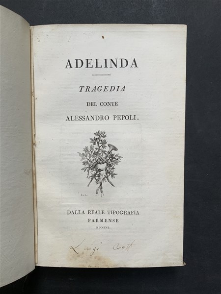 [BODONI] PEPOLI Alessandro. Adelinda. Parma: Bodoni, 1791. 8vo, vignetta al fro