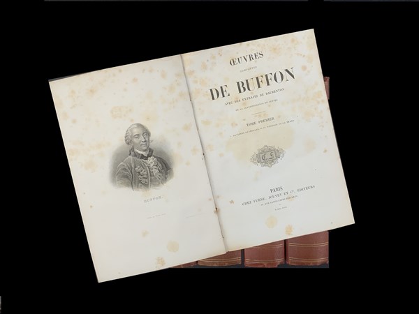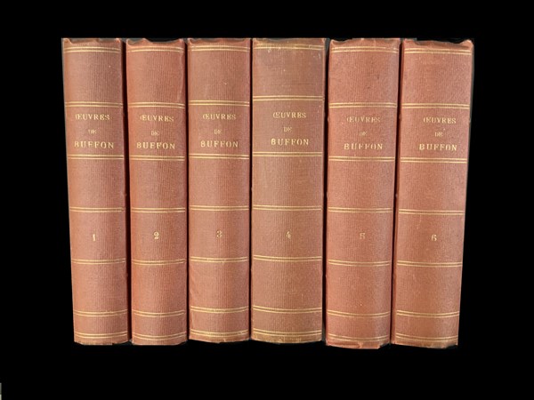 BUFFON George. Oeuvres complètes, avec des extraits de Daubenton et la classification de Cuvier. Parigi: Furne, Jouvet 1866-68. 6 vol, 4to, numerose tavole acquarellate nel testo, legatura coeva in tela rossa con titoli in oro al dorso. Non collazionato e difetti da esaminare.