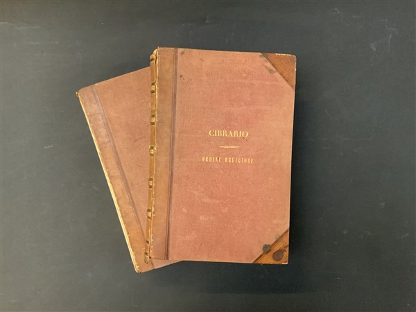 CIBRARIO Luigi. Descrizione storica degli ordini religiosi Torino, Stabilimento tipografico Fontana, 1845. 2 voll, 4to; I volume: occhiello, 30 tavole; II volume: occhiello, 67 tavole (fioriture). Legature coeve in mezza pelle con titolo in oro al dorso e ai piatti (difetti, dorso del secondo volume assente). Bell'opera dedicata agli ordini religiosi con tavole colorate a mano. Non collazionato e difetti da esaminare.