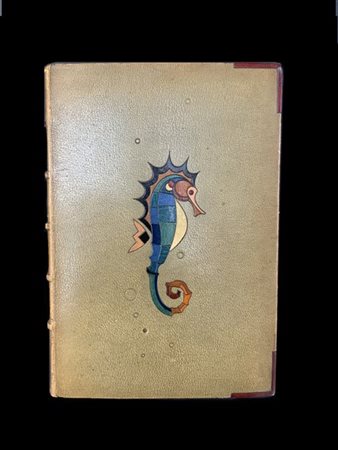 D'ANNUNZIO, Gabriele. Laudi del cielo del mare della terra e degli eroi, solo libro terzo]. Alcione. Verona: officina Bodoni, 1927. Copia n. 2095 in pregiata legatura in marocchio verde illustrato da un cavalluccio marino con inserti in pelle al piatto anteriore, stelle al piatto posteriore e dorso con diverse illustrazioni. Non collazionato e difetti da esaminare.