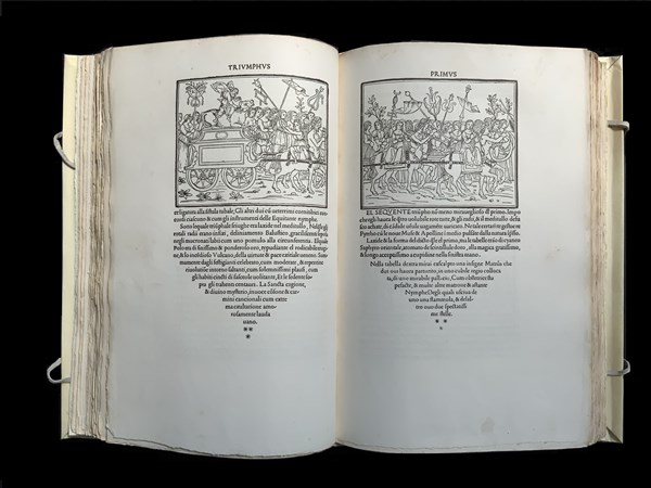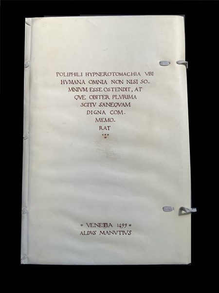 [FACSIMILE] - COLONNA, Francesco. Hypnerotomachia Poliphili. Londra: Methuen & Co., 1904. Edizione facsimilare del più celebre libro illustrato del Rinascimento. Esemplare in barbe legato in pergamena con titolo manoscritto in stile antico ai piatti e al dorso, e lacci; preservato entro cofanetto in carta marmorizzata
