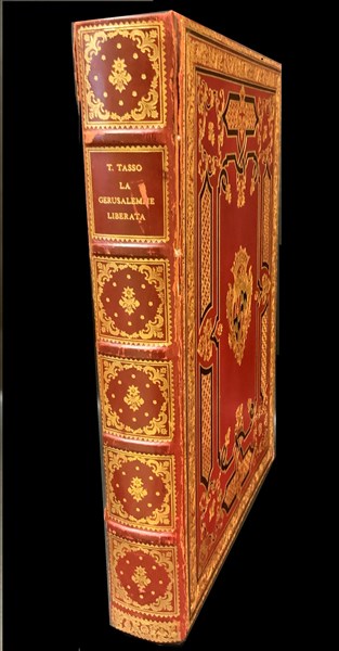 [FACSIMILE] - TASSO, Torquato - La Gerusalemme Liberata. Milano: Edizione Gentrino Italiana, 1967. Folio, versione di pregio della Gerusalemme Liberata rilegata in elegante pelle decorata in oro, entro cofanetto originale (cofanetto con difetti). Esemplare numero 169 di 200 stampato ad personam per Adalberto Valli
