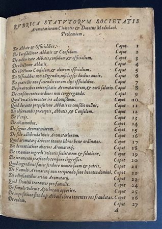[GASTRONOMIA- COLLEGIO DEGLI SPEZIALI] Rubrica statutorum Societatis aromatario
