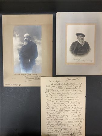 GIACOSA, Giuseppe; GUERRINI Olindo (detto SACCHETTI). Due ritratti fotografici firmati ciascuno da un autore. INSIEME a una lettera autografa di GUERRINI