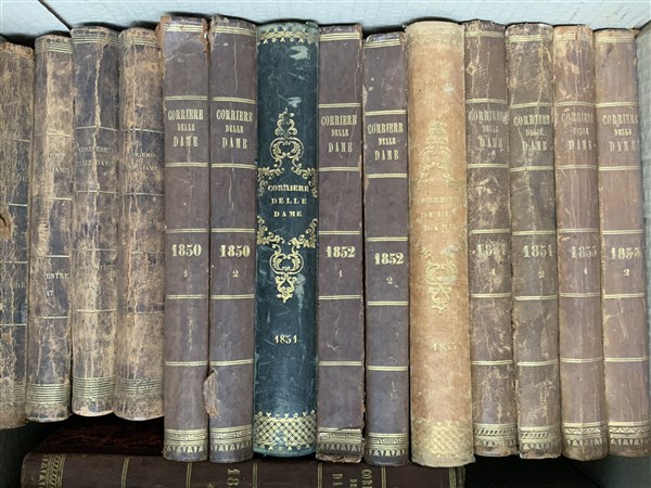 [GIORNALI - CORRIERE DELLE DAME]. Interessante lotto di 18 volumi variamente rilegati del Corriere delle Dame che include tutti i numeri degli anni 1846, 1847 e dal 1849 al 1857 Per un totale di 133 tavole. Buona raccolta del celebre giornale milanese spettatore privilegiatio degli avvenimenti cittadini. Non collazionato e difetti da esaminare.