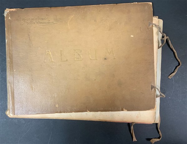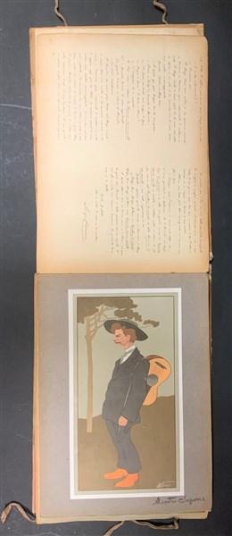[GIORNALI] Il Giornalino della Domenica. Album contenente numerose pagine con testimonianze di lettere (in facsimile) dei vari collaboratori e amici dellìimportante testata: L. Capuana, L. Rasi, A. Negri, R. Bracco, N. Colajann, G. Mazzoni, O. Guerrini, P. Mascagni. Oltre a queste molte tavole su cartoncini colorati di caricature, disegni e attestati in onore di Vamba e del suo Giornalino. Non collazionato e difetti da esaminare.