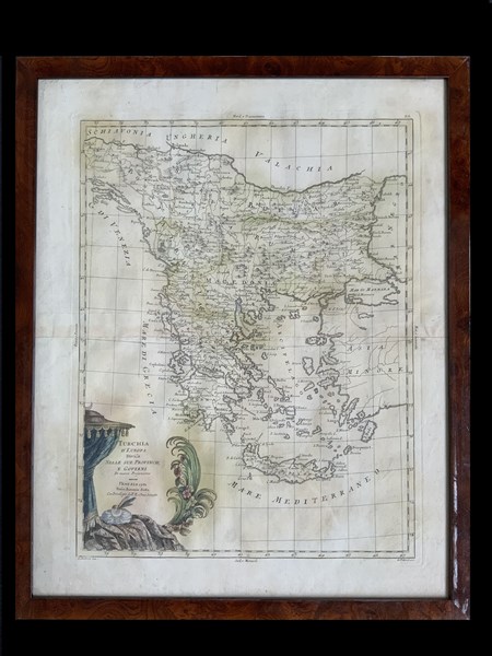 [GRECIA] Turchia d'Europa divisa nelle sue provincie e governi. Venezia: Zatta, 1782. (480 x 380 mm) entro cornice. acquarellata. Lievi macchie