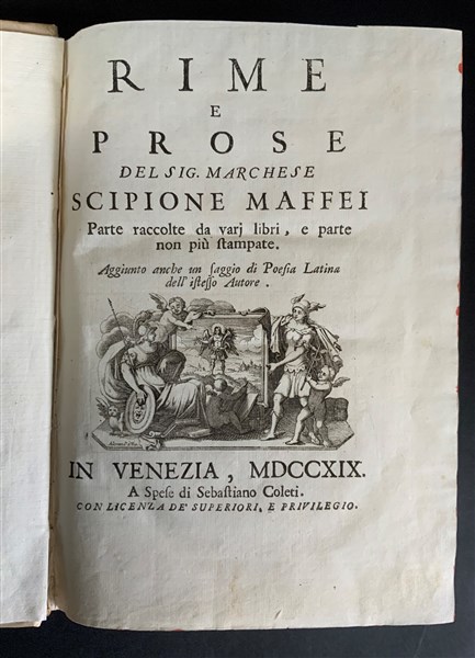 MAFFEI Scipione. Rime e prose. Venezia: Sebastiano Coleti, 1719. 4to. 2 tavole