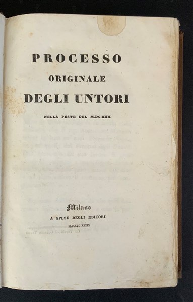 [MANZONI] Processo originale degli untori nella peste del 1630. Milano: Truffi,
