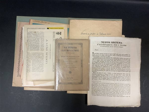 [MILANO - ILLUMINAZIONE]. Serie di documenti sull'illuminazione a GAS a Milano, nei Teatri e nelle strade